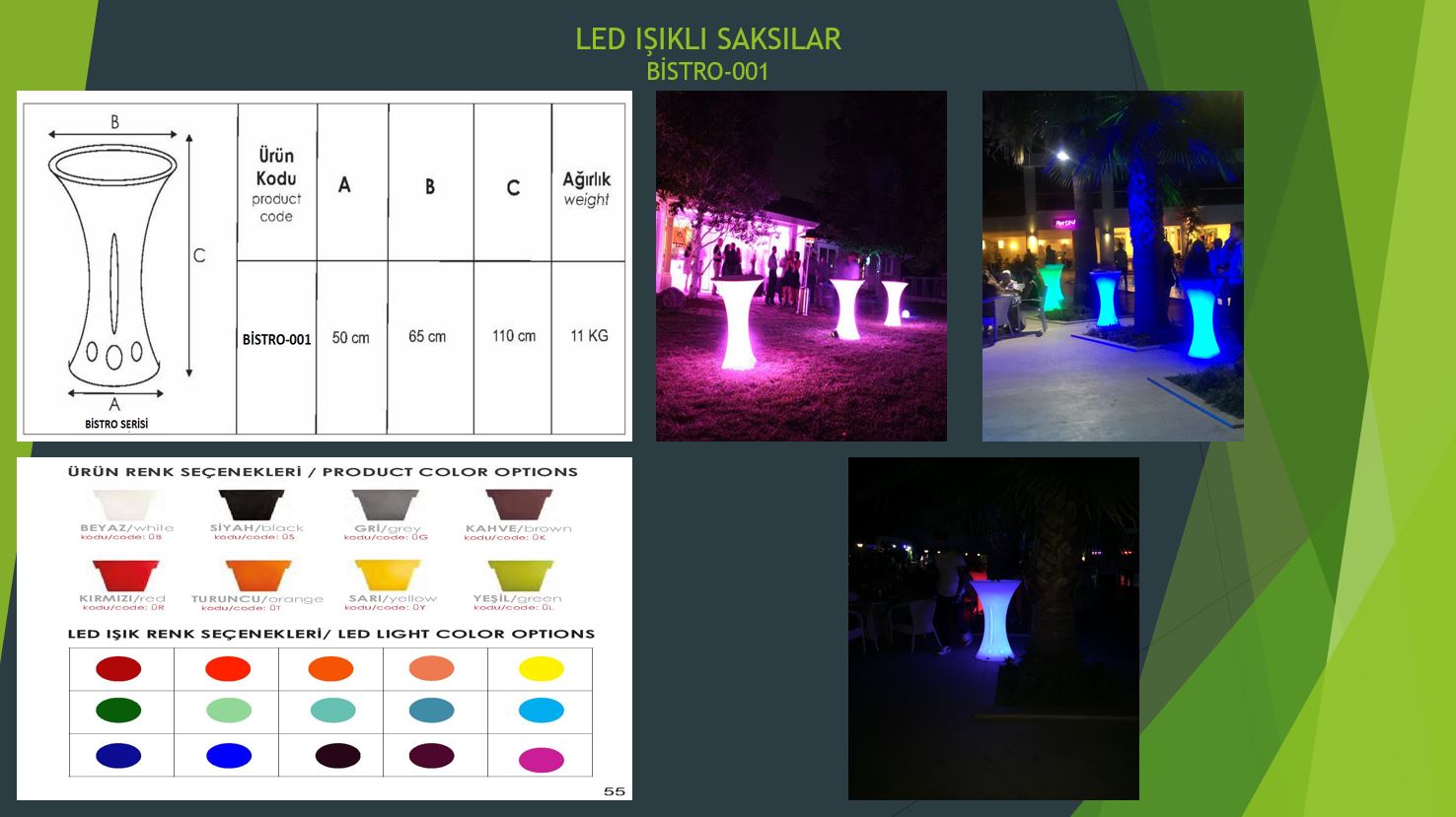 LED’li Saksı Nedir? LED’li saksılar, gövdesi ışık geçirgen malzemeden yapılmış ve içine RGB veya beyaz LED aydınlatma yerleştirilmiş saksılardır. Uzaktan kumandalı veya sabit renkli seçenekleri bulunur.