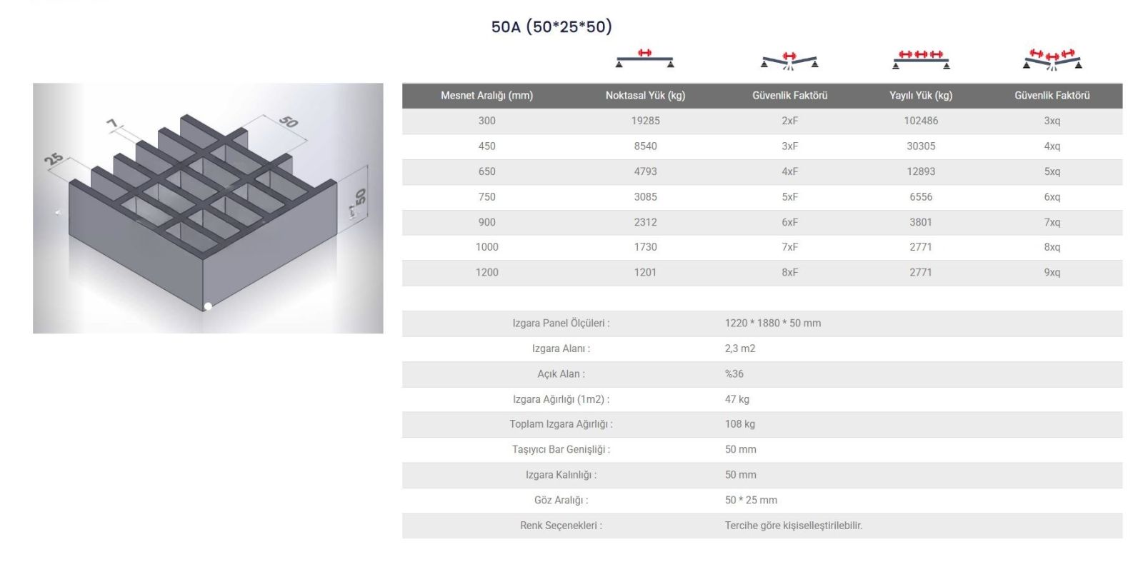 | Izgara Ağırlığı (1m2) : | 47 kg | |||