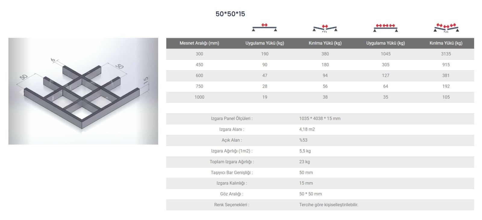 | Izgara Ağırlığı (1m2) : | 5,5 kg | |||