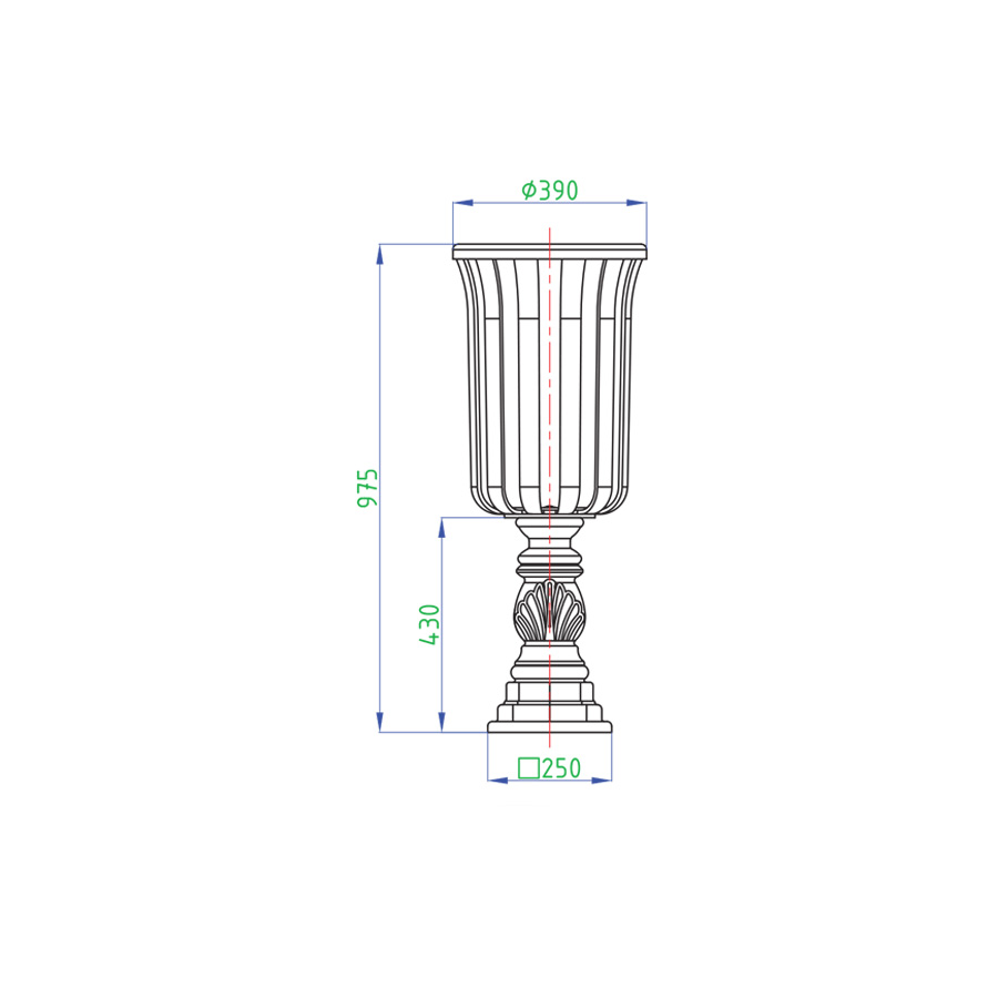 Kupa Garby tipi kompozit çöp kutusu, modern ve şık tasarımıyla özellikle şehir mobilyalarına estetik katkı sağlar. Dayanıklı CTP (Cam Elyaf Takviyeli Polyester) malzeme yapısı sayesinde dış ortam koşullarına karşı maksimum dayanım sunar. 50 litrelik kapasitesi ile yoğun kullanımlı alanlar için idealdir.