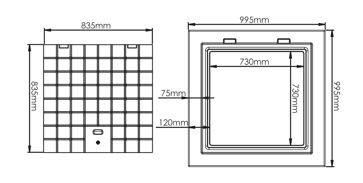Pervaz sabitlenip Kapak Açıldığında 73x73 boşluk görürsünüz.