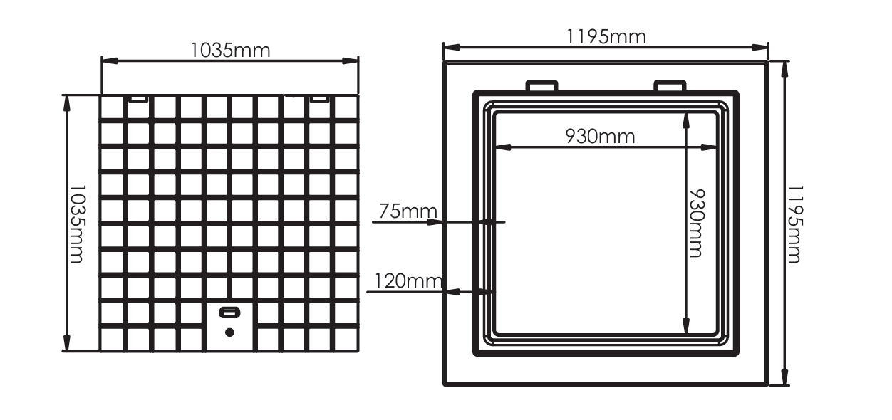 - **Kapak Açıldığında Görünen Boşluk:** 930 x 930 mm