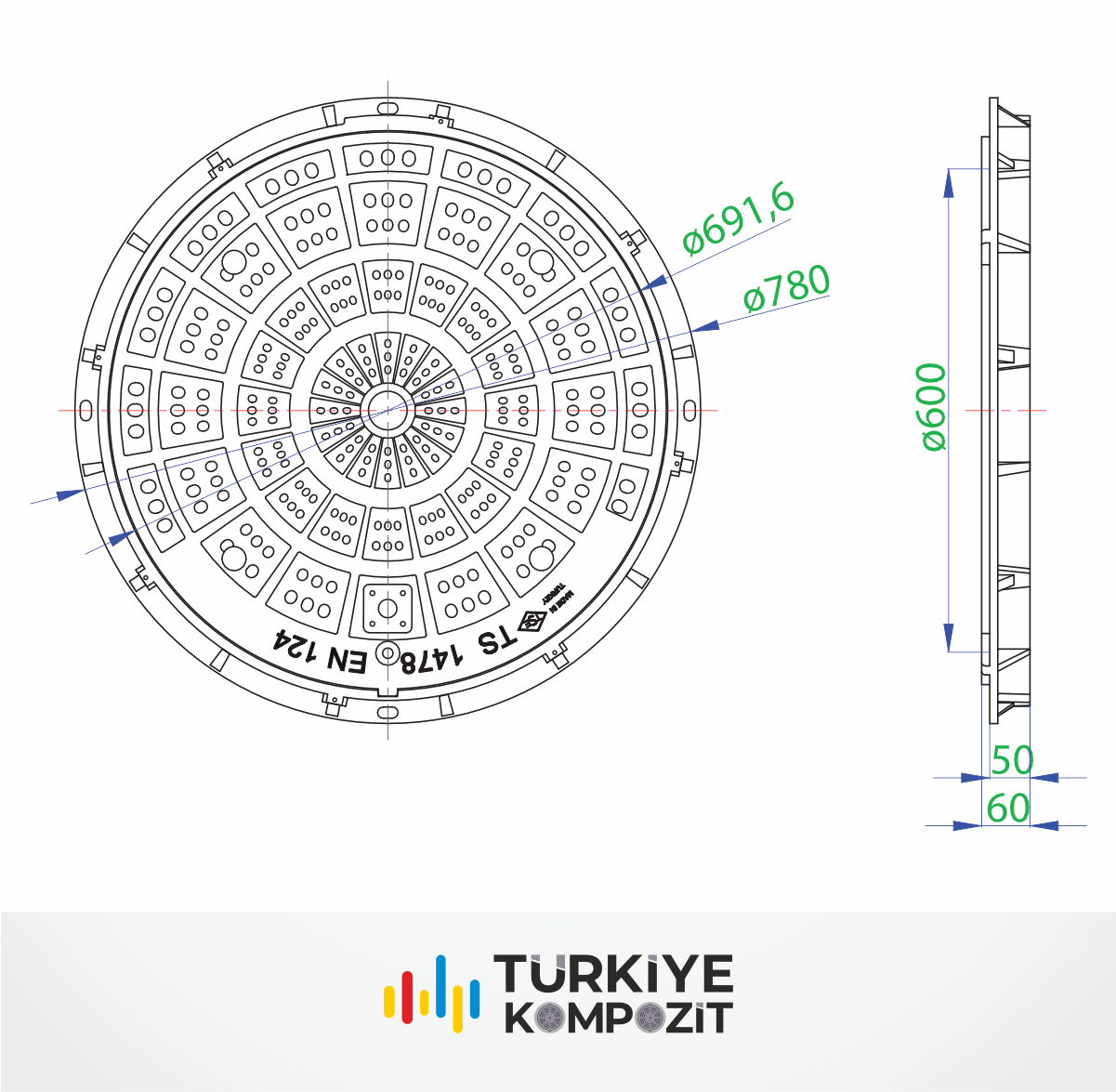 Kompozit Kapağı Menteşesiz Ø 600mm Model 2 | Türkiye Kompozit