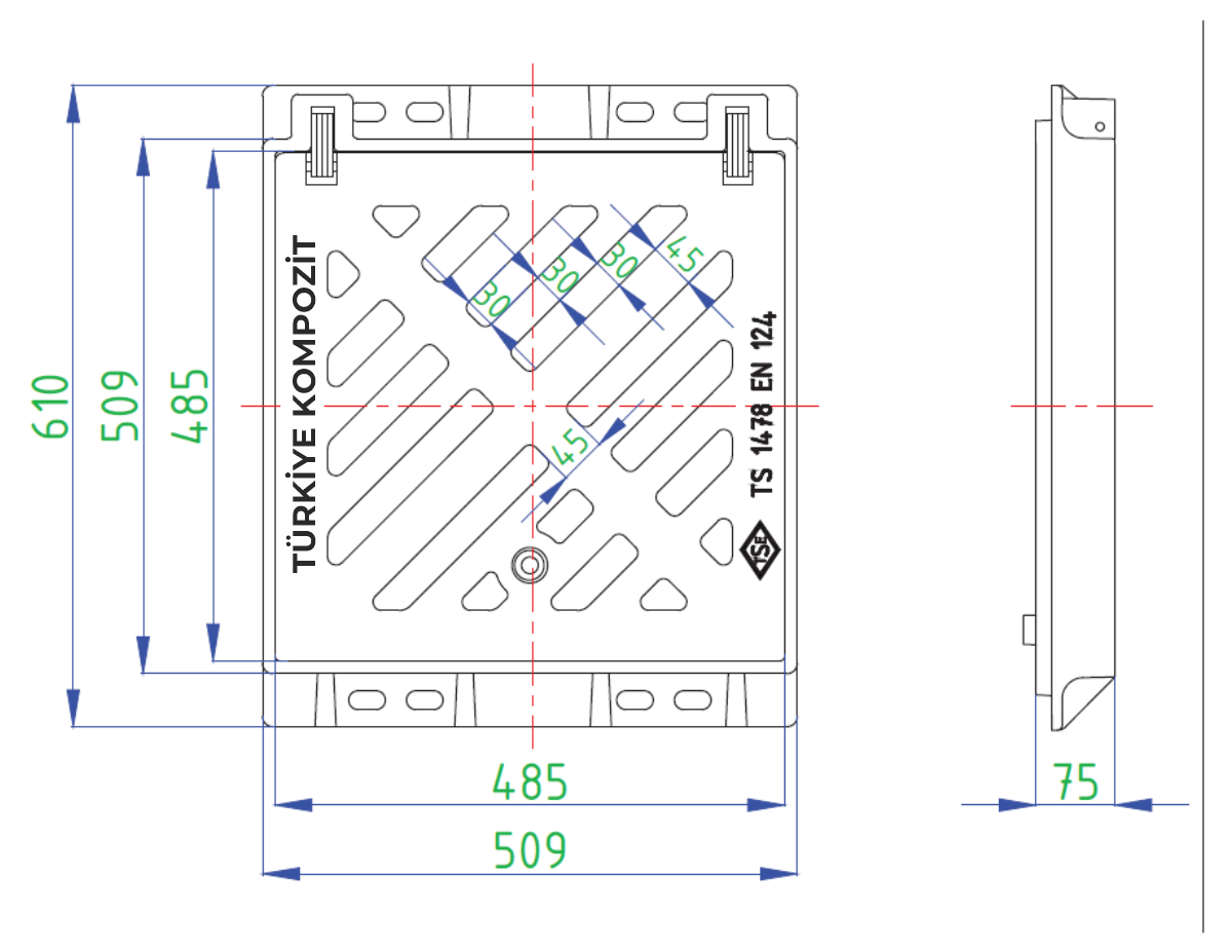 Kompozit Yağmur Suyu Izgarası 485x485 mm ölçüsündeki kompozit yağmur suyu ızgara takımı, şehir içi ve özel alanlarda yüzey suyu tahliyesi için ideal, hafif ve uzun ömürlü bir çözümdür. Geleneksel metal dökümlere göre daha güvenli, paslanmaz ve hırsızlığa karşı korumalıdır.