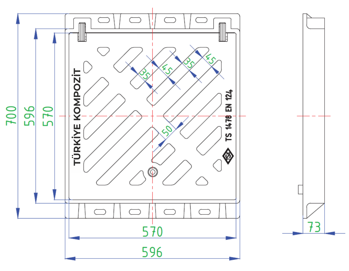 **Türkiye Kompozit** markalı **570x570 mm kompozit yağmur suyu ızgara takımı**, şehir altyapısında drenaj sistemlerinin güvenli ve verimli çalışmasını sağlayan, çevre dostu ve uzun ömürlü bir çözümdür. **EN 124 B125** standardına uygun olarak üretilen bu ürün, **paslanmaz**, **korozyona dayanıklı** ve **hafif yapısıyla** montaj kolaylığı sunar. **Kompozit malzeme teknolojisi**, yüksek taşıma kapasitesi ve bakım gerektirmeyen yapısıyla altyapı projelerinde ideal tercihtir. Belediyeler, müteahhitler ve altyapı firmaları tarafından **kaldırımlar**, **otoparklar**, **yeşil alanlar** ve **yol kenarları** gibi alanlarda yaygın olarak kullanılmaktadır. Türkiye’de üretilen bu ızgara takımı, kalite, güvenlik ve sürdürülebilirliği bir araya getirir.